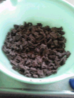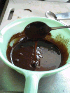 そしてその生クリームを、先ほど砕いたチョコに加え、更にバターを加えて、溶かします