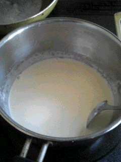 次に生クリームを沸騰直前まで加熱します。