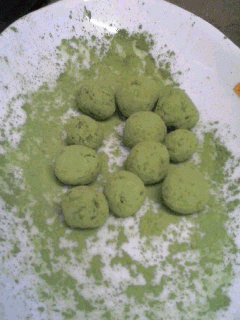 あ、こちらはココアパウダーをまぶすかわりに、抹茶をまぶしたものです。