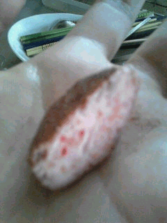 丸める前は、このようにすごくピンクで……見えます?粒々がw